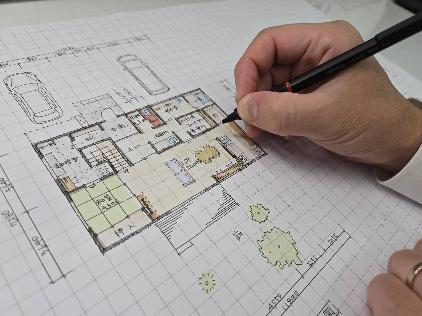 こちらからお渡しする手描きの図面はお持ち帰りOK。設計士の意図が込められた“リアルな家づくりの第一歩”です。ご家族で眺めながら会話を楽しめる、“夢を持ち帰れる”特別な体験です。