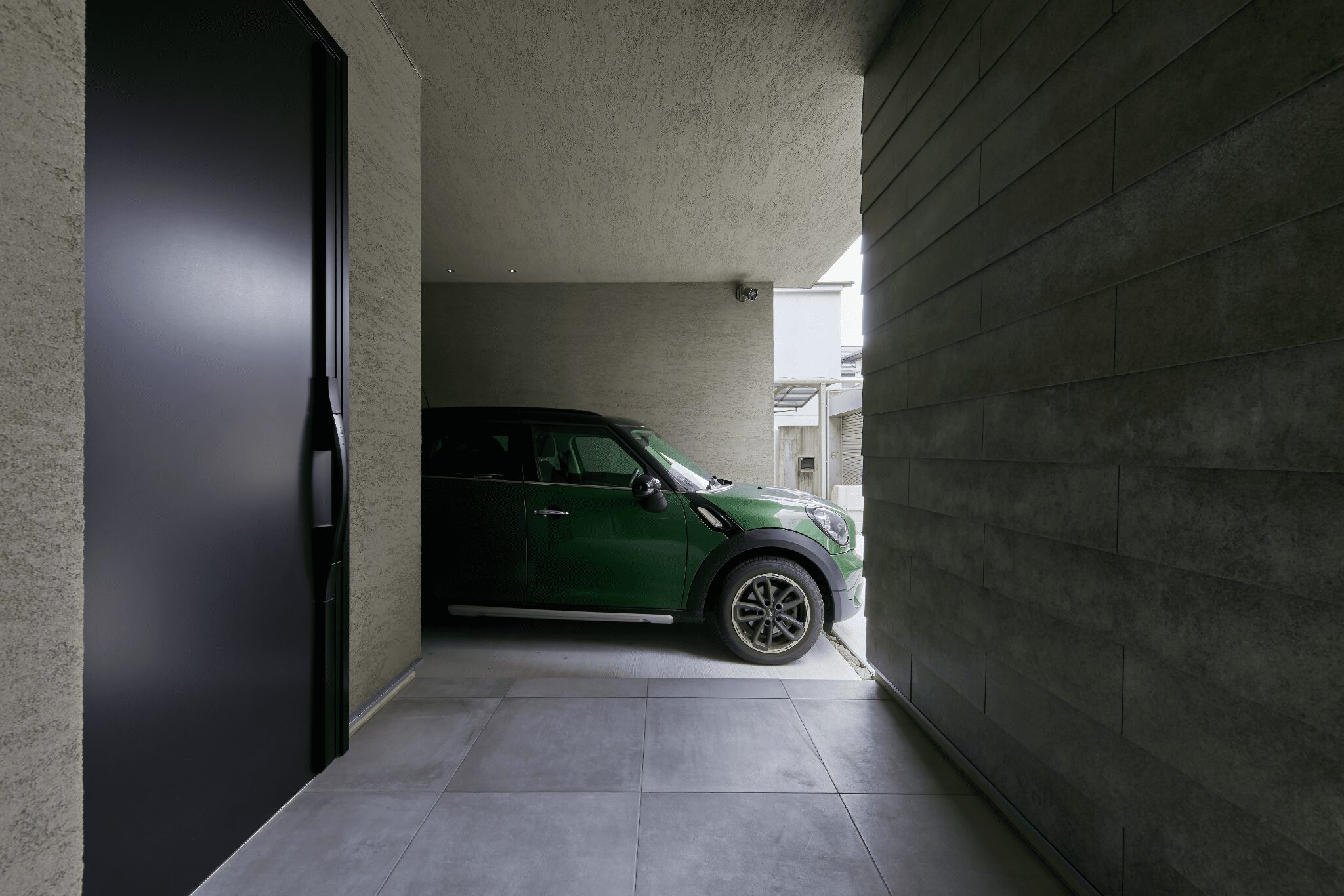 雨の日でも濡れずに玄関へ入れるスムーズな動線が、