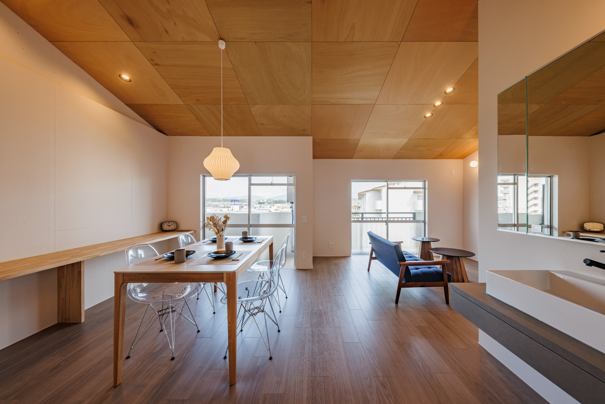 生まれ変わった空間には、光と素材が